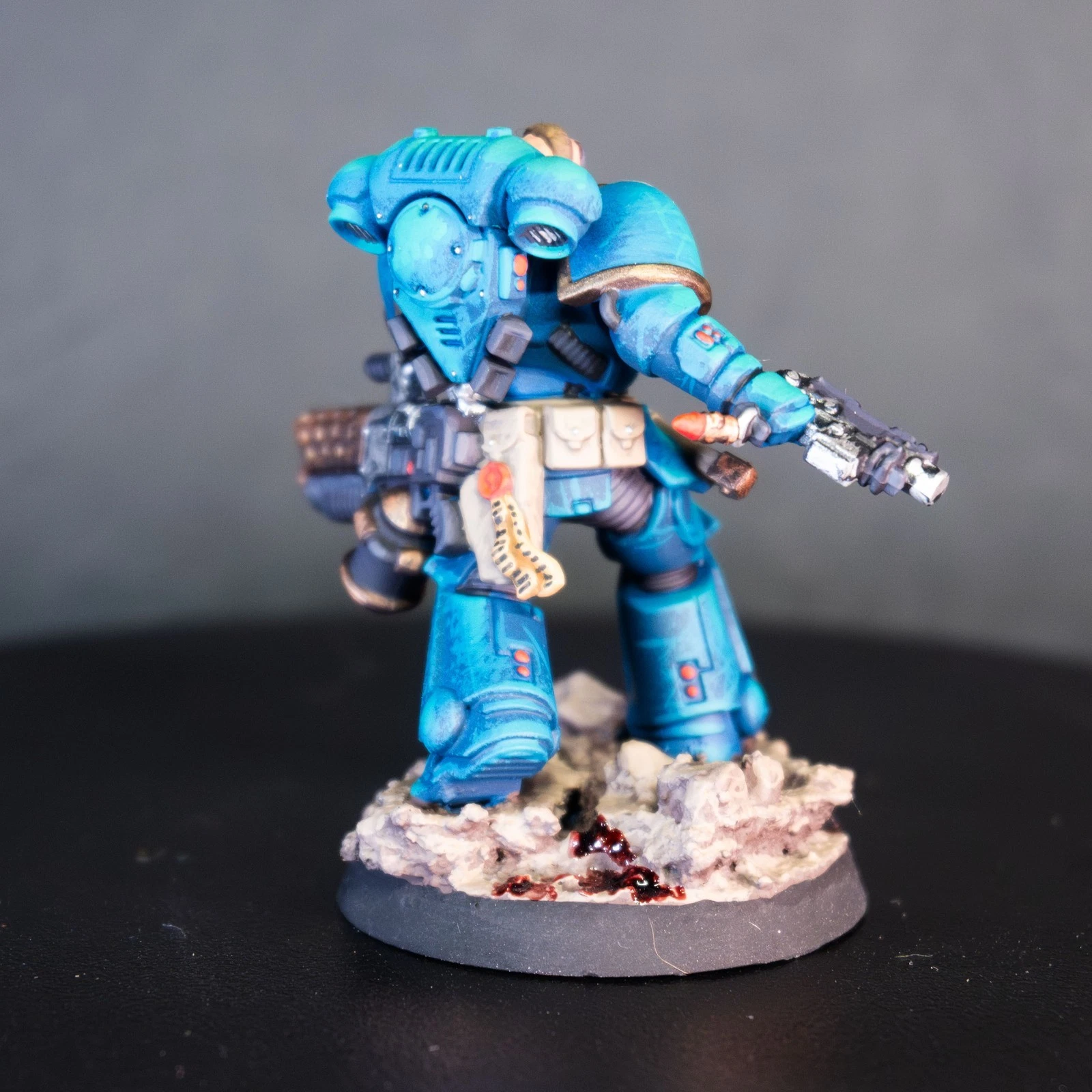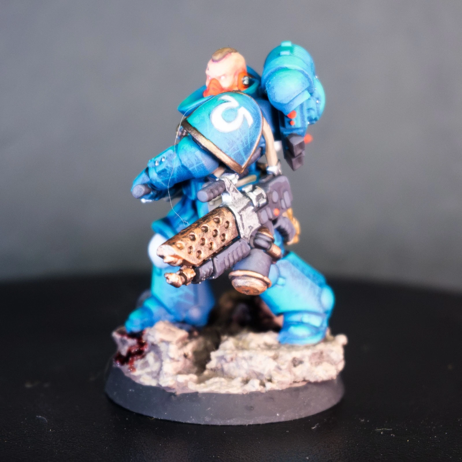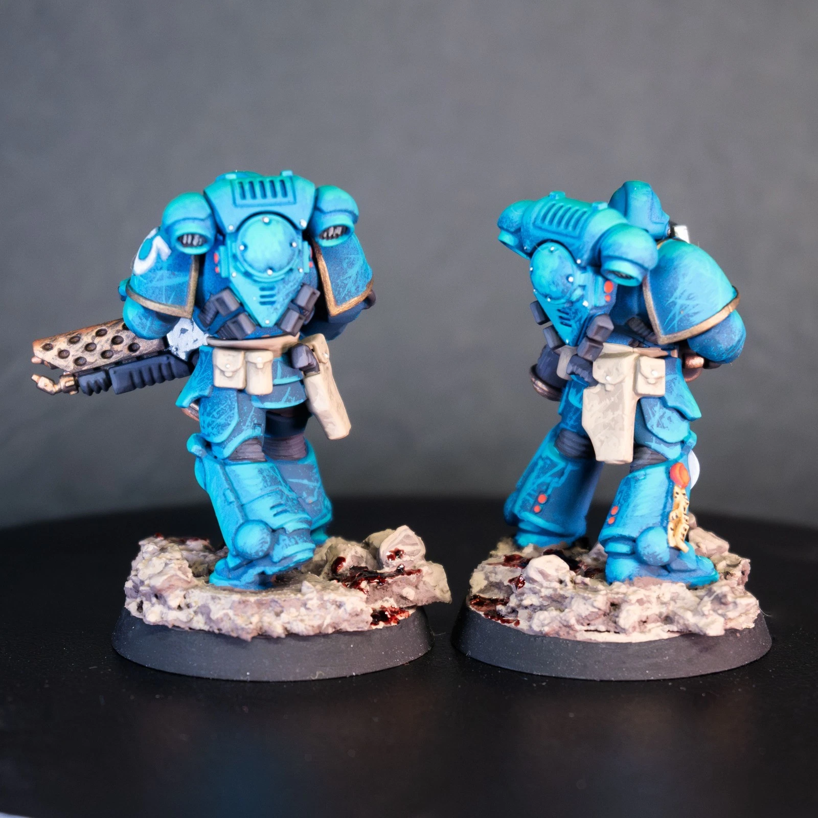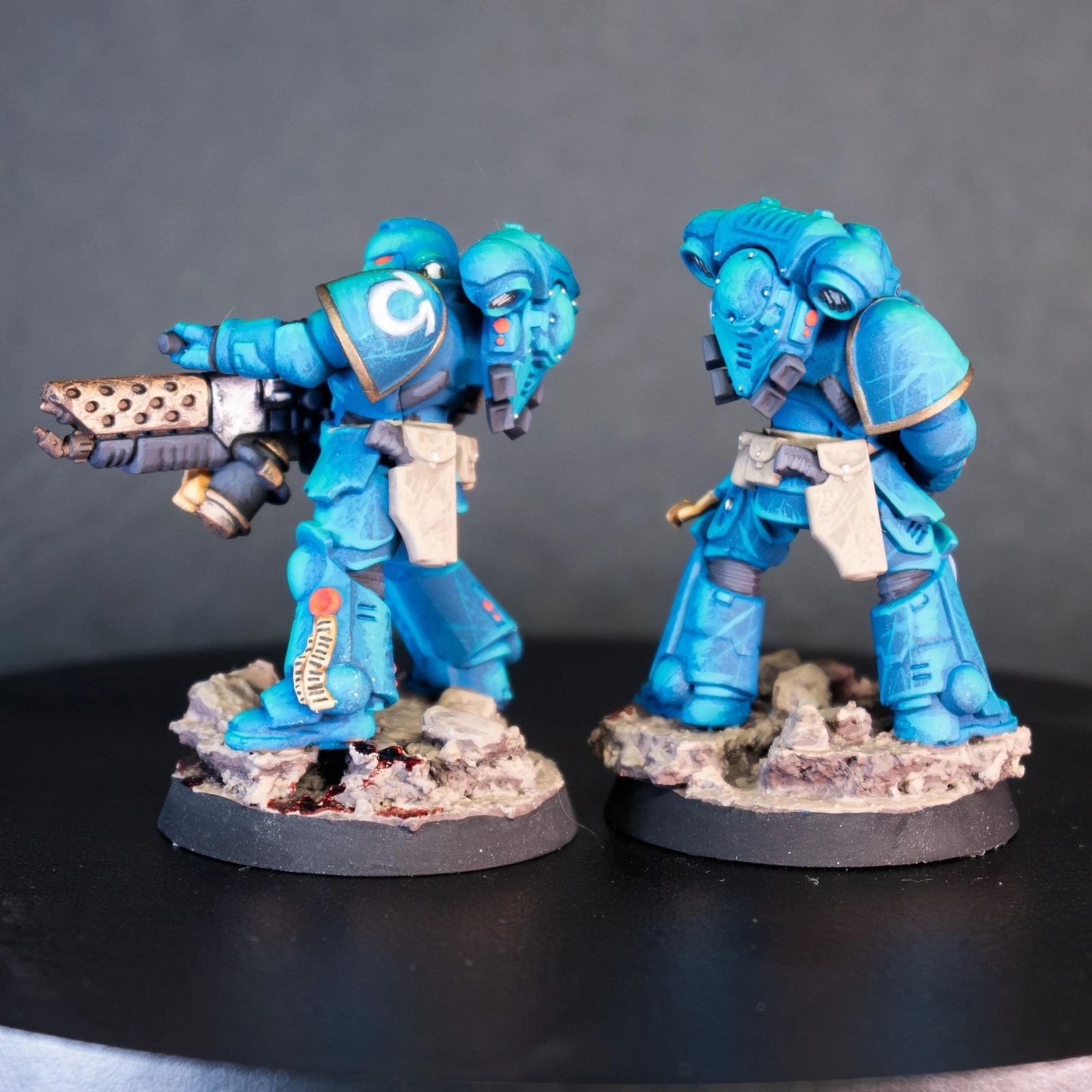 Massima leggibilità e volumi estremi. Una squadra di Infernus Marines dipinta con un contrasto netto per far risaltare ogni singolo pannello dell'armatura MkX.